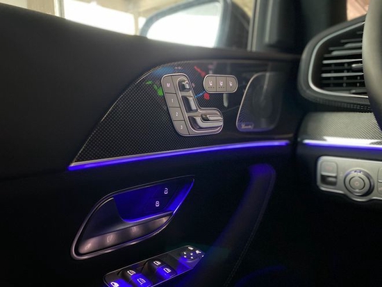 前排座椅通风加热,座椅记忆,座椅电动调节都在门板上控制,柏林之声音响和64色氛围灯为标配。
