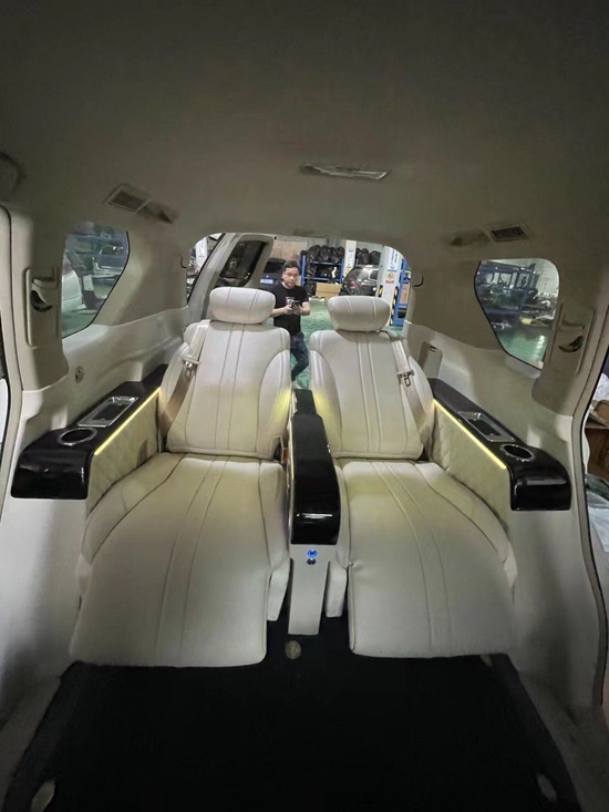 商务小桌板:在汽车内饰改装上,小桌板也是发挥着它不一样闪亮点,折叠设计不占用空间,结构稳定,承重力好在忙碌的工作当中可以放上你的办公设备,提高工作效率。有了小桌板,休息之余泡上一杯香醇浓郁的咖啡,再也不用担心没有多余的位置摆放木质地板:现如今,商务、家庭用车改装木质地板也越来越多,简洁大气,瞬间提升内饰档次,最主要的还是木质地板的质感增强了乘车的舒适性和满足感。木质地板作为汽车内饰寿命较高,体验感强烈,所表现出来的气质和其他汽车内饰也是截然不同的,在视觉的冲击之下,也是一辆汽车最容易出彩的地方