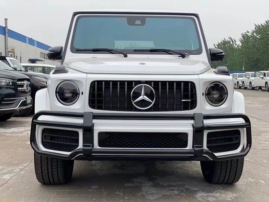 奔驰G63 (配置|询价)AMG运动又独特的外观造型设计,经过重新设计的前进气格栅与两侧圆形大灯相互呼应,整个前脸的造型更为抢眼进气格栅的多幅式镀铬采用了镂空的设计,保险杠也经过了重新的设计让新款大G63的前脸看上去更为粗犷,氙气大灯下方还增添了时下流行的LED日间行车灯设计,看起来更具时尚感。
