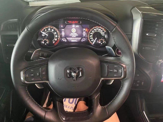 道奇公羊霸王龙内饰部分进一步强化了其高性能版本的形象,中控台和座椅随处可见的TRX标识便是最好的例证。同时,作为道奇Ram家族的旗舰车型,新车还配备了12英寸竖置中控屏幕,除了支持蓝牙、导航和车载Wi-Fi等常见功能,还支持Apple CarPlay和Android Auto手机映射。