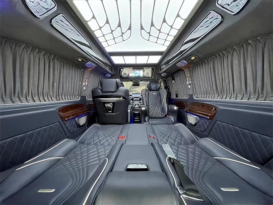 今天介绍一款奔驰威霆巴赫版定制车型;它不仅拥有绝佳的空间设计,让商务出行更加舒适放松;还有可调整的座椅设计能根据实际需求灵活改变,满足各种类型的使用要求。全车尺寸:5370*1928*2080mm,完美保证了车内空间也造就了非同一般的外观。