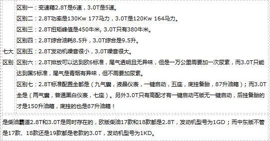 柴油版丰田霸道2800和丰田霸道3000的区别: