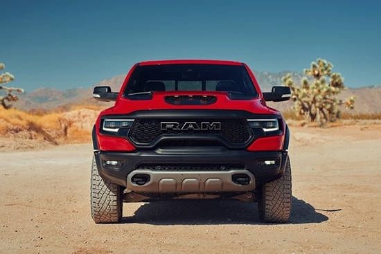 22款道奇公羊RAM霸王龙外观方面,新车传承了道奇Ram家族高大威猛的造型设计,同时细节部分融入了更多高性能元素,包括经过黑化处理的前格栅,引擎盖两侧的黑色进气口,以及为了容纳巨大的机械增压器而设计的通风口等等。此外,新车还配备了视觉冲击力更强的黑色轮眉和外露式的拖车钩,看上去十分霸气。