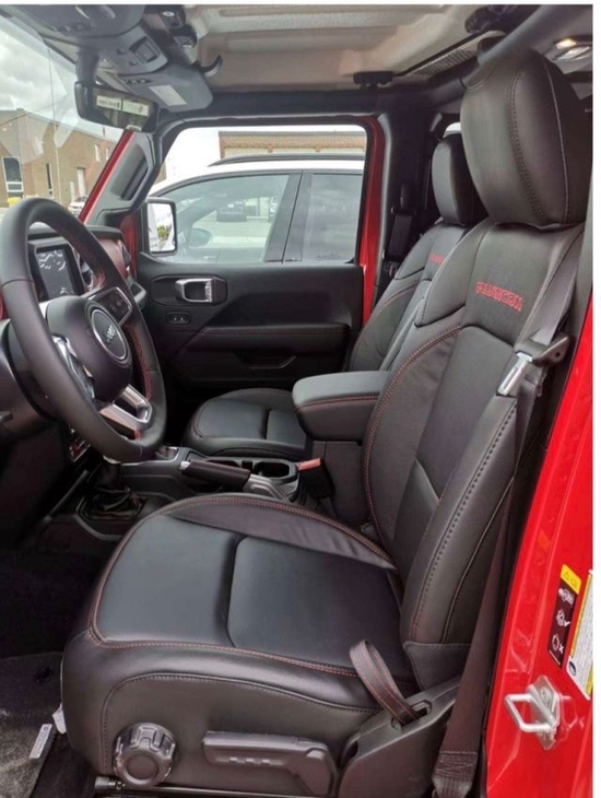 真皮包(中控台、门把手、手刹、档把 、座椅真皮红色缝线包裹,座椅带Rubicon刺绣标识)全时四驱系统 8速变速箱 Coming Gorilla Glass大猩猩放破碎挡风玻璃 硬顶三件套 车身同色轮眉