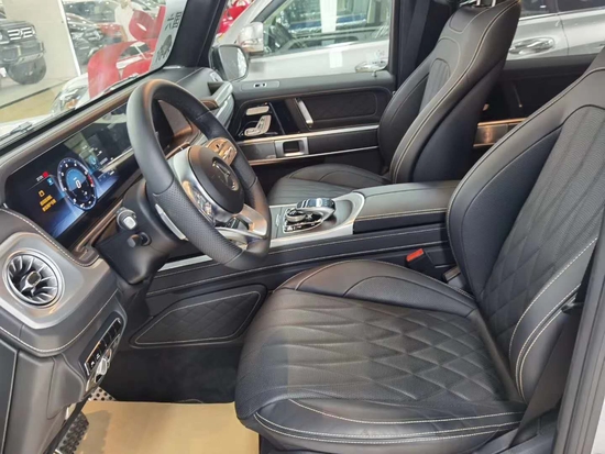 奔驰G400柴油40周年纪念版宽敞开阔的车内空间就已经令人倍感自由奔放,特有的居高临下的座椅位置确保您时刻保持极佳的全方位视野。拥有奢华的内饰装饰,大量的真皮运用以及可通过选装的点缀材质,搭配上富含科技感的中控仪表设计,充满着一种藐视一切的自信感。