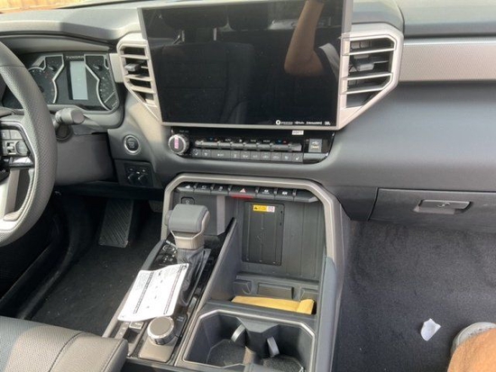 2022款丰田坦途最具辨识度的莫过于前脸这块非常大的进气中网设计,通过亚光银的饰条搭配黑色蜂窝网状的造型使得视觉上整个中网的面积似乎从车标一直拉通到前保险杠的位置上,第一感觉无疑是非常野性的。