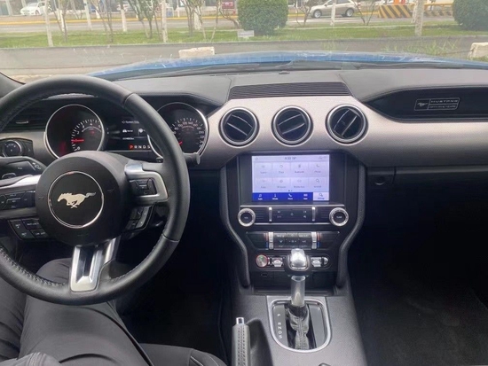 福特野马内饰完全进行了重新的设计,新车中控台中央增加了一个大尺寸的屏幕,下方按键的排列也有所调整。圆形的空调出风口可以向任意角度送风,时尚又实用,此外,新车还将搭载福特与微软共同开发的SYNC系统。与中控屏相辅相成的是驾驶位前方的全液晶仪表盘,车辆状态、旅程信息、娱乐系统都会在两块屏幕上显示。