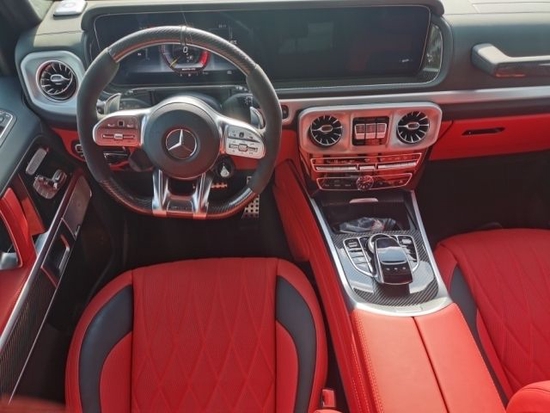 2022款AMG G63内饰方面,新G63保留了新G500的整体设计,除配色差异外,新车还换装了全新造型的平底式AMG运动方向盘,其两侧配以打孔皮质包裹,下部镀铬装饰的造型也与新G 500明显不同,看上去十分战斗。此外,全液晶仪表盘+中控大屏的双12.3英寸屏幕设计在新车上也没有缺席,营造出了浓郁的科技感。