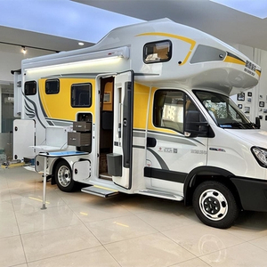 车内部分采用中式的家居风格,更符合中国人的审美,会客厅部分采用的是对座式沙发卡座的设计,直径达到了1.95m做到了行业内最宽,两个成年人面对面坐不会碰到腿。车内储物空间同样十分出色,会客厅上方拥有4组吊柜,后尾部3组,沙发卡座下方同样是储物空间,加上超大的储物仓大概拥有2500L的储物空间可供使用。