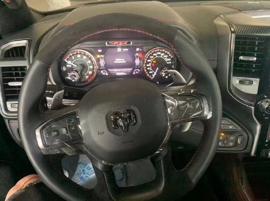 道奇公羊外观设计极具冲击感,前倾式车头,相较中规中矩的家族设计无疑多了几分对路面的侵袭感。车内氛围堪称豪华,绝对可以媲美高级轿车。眼神中没有透露出一丝的活泼神韵,唯一展现出来的只有凶狠。前杠是铁质前杠带拖钩,散发这金属气息,沉稳大气。