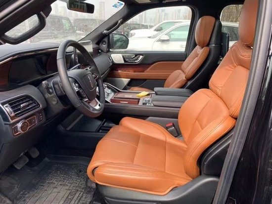 22款林肯领航员的内饰非常奢华,多功能方向盘,中控台的造型与宽大的车身相呼应,新车全部真皮包裹座椅,内饰采用桃木搭配设计,高贵典雅,加高加大的车身除了增加内部空间外,还给人营造一种尊贵典雅的感觉。最新林肯领航员新车采用了2+2+3的座椅布局,第二排采用了两个独立座椅,座椅内侧均配有扶手,舒适度超强。