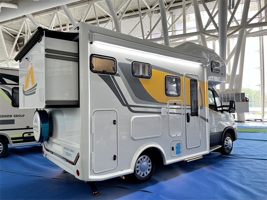 E途SE基于进口依维柯New Daily底盘打造,动力更充沛,维持了高端定位。后部车厢采用五明治双热断桥保温墙体设计的玻璃钢车身打造,整车厢体实现热断桥,与双层保温地板搭配可以保证车内温度的稳定。车内生活区依次设置了额头床、会客厅、厨房、卫生间和尾部横床,可以满足一家人户外旅行。