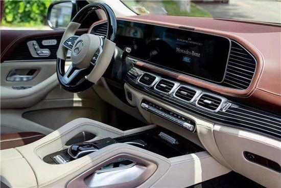 22款奔驰GLS450值得一提的是新车配备的12.3寸的英寸液晶连体大屏幕,还增加有远程互联在线服务系统,该服务系统将包括自动紧急呼叫、事故救援,故障救援,远程车辆诊断等功能。内饰进行了新的设计,但也对部分GL的经典设计进行传承。