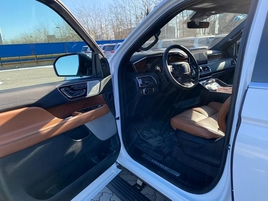 2022款林肯领航员3.5T双窗全景天窗、中控12.3寸液晶显示器、电动方向盘、方向盘加热、Lincoln皮革包裹方向盘、仪表板和门上的高级木质装饰、电子控制三区空调、Weir®微型穿孔皮革座椅、前排加热通风按摩记忆座位、30项电动调节座椅、后排座椅具有10英寸屏幕媒体中心、二排加热座椅。