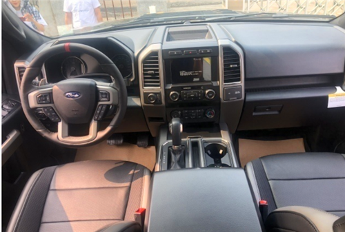 福特F150车内配备标准独特的皮革和布艺装饰的座椅,驾驶员侧的电动十向调节。这些座椅同时具备记忆功能。中央控制区搭配了触控式显示屏,其下方则是多媒体控制区及空调面板,采用旋钮 物理按键的组合。中控功能区域可分为三个小控制区,最上端为音响控制及导航控制,中间为收音机调节控制,最低端为空调及座椅加热控制。