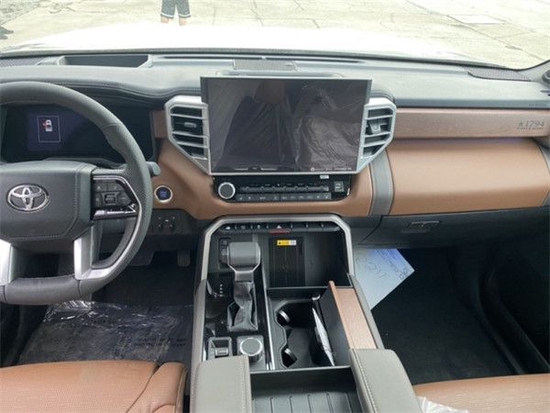 22款丰田坦途采用悬浮式中控大屏设计,中控屏从低配版8英寸到顶配版的14英寸,并且还提供有12.3英寸的全液晶仪表盘可供选择,支持CarPlay和 Android Auto系统。值得一提的是,新车全系标配Toyota Safety Sense 2.5智行安全系统,具备拖挂模式、蠕行模式、越野模式等多种驾驶模式