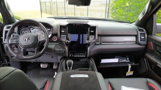 2022款全新道奇公羊运动版皮卡内饰的整体设计也是偏向运动,黑色的内饰设计,整体运动氛围非常的强,相比于豪华版本棕色皮革典雅的设计风格,运动版公羊纯黑色的内饰给人营造出了一种极强的驾驶欲望。