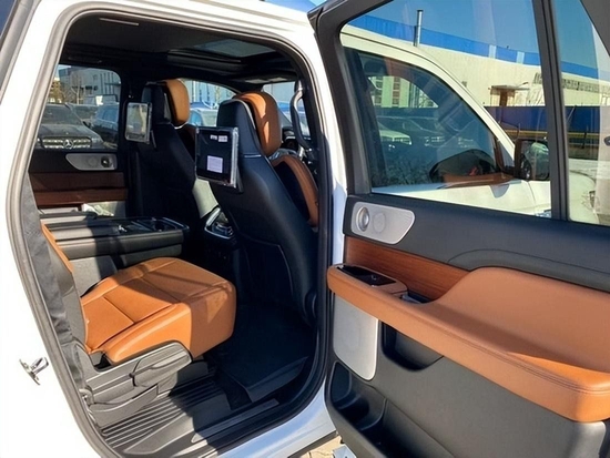 2022款林肯领航员3.5T的内饰非常奢华,多功能方向盘,中控台的造型与宽大的车身相呼应,新车全部真皮包裹座椅,内饰采用桃木搭配设计,高贵典雅,加高加大的车身除了增加内部空间外,还给人营造一种尊贵典雅的感觉。最新林肯领航员新车采用了2+2+3的座椅布局,第二排采用了两个独立座椅,座椅内侧均配有扶手,舒适度超强。