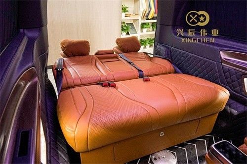 第三排座椅为标准的电动沙发座椅,可以通过隐藏在靠背中部扶手上的控制屏对座椅的靠背、腿托进行控制调节,必要时可以完全放平,形成一张豪华双人大床。其绝佳的空间设计,让商务出行更加舒适放松,可调整的座椅设计能根据实际需求灵活改变,满足各种类型的使用需求。