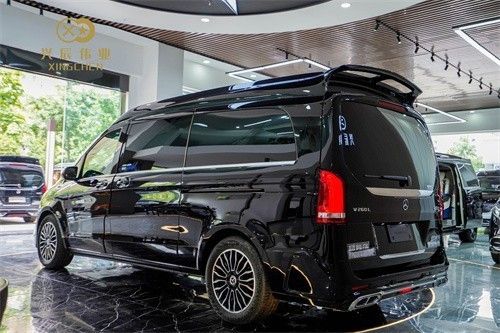 奔驰威霆平顶商务车其外观采用了奔驰迈巴赫的外观套件,大量镀铬件点缀装饰,黑白相间,层次分明,整车质感非常出众,时尚又大气。品质工艺都是一流水准,拥有着豪华霸气的超强气场。 从里到外面全部更换的一款奔驰威霆顶配双开门版,车身长度5370*宽1928*高1880*,让您花低的价钱来享受一台最高端的奔驰威霆商务车,也绝对有面子。