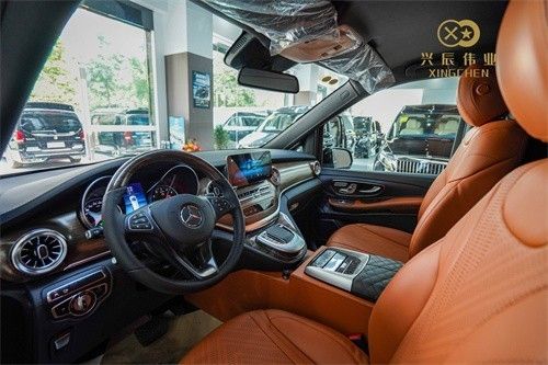 新款奔驰威霆平顶7座商务车采用了全新三幅式设计多功能方向盘,加装nappa真皮包覆,以及大量的高光橡木点缀,全车的座椅和内饰皮革采用的都是进口头层牛皮,保证了隔音性观赏性以及舒适感。中控部分采用奔驰V~Class的悬浮式中控大屏、巴赫钟表、车载冰箱等豪华配置。彰显着其奢华与舒适。