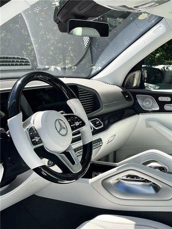 迈巴赫GLS600后排带有全景天窗、独立的多媒体娱乐系统、独立分区空调,车内香氛装置,可选车载冰箱、后排小桌板。整车都是夹层玻璃,搭配整车降噪组件隔音非常好,车内带64色氛围灯,26喇叭的柏林之声音响系统。