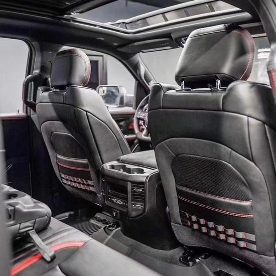 2022款道奇公羊霸王龙TRX做工则完全摆脱了美式的粗糙感,边缘、接缝都处理的很精细。真皮座椅各自独立,配有加热、按摩等舒适功能,每个座椅独立配一个操控手柄,各项功能由乘坐者自己控制。道奇公羊皮卡车型全部座椅均采用真皮包裹,前排还配备了十分实用的运动座椅。