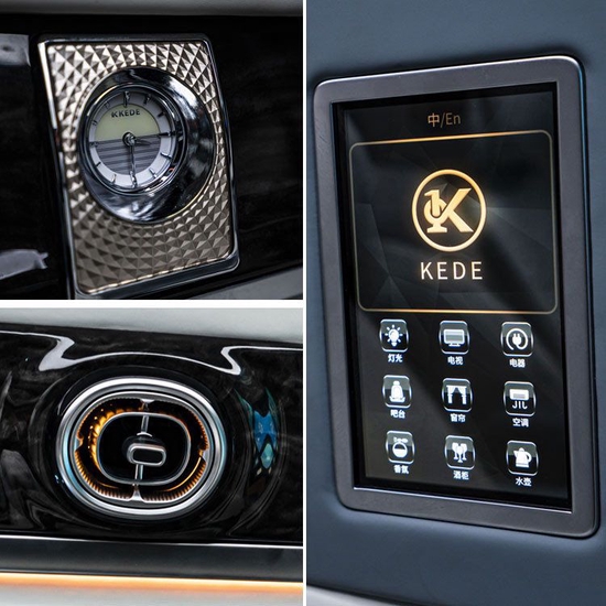车内还有①隐藏冰箱、②隐藏式红酒柜、③隐藏式酒樽和调酒器,以及④隐藏式抽屉,应有尽有居家式设计,如同一座移动的五星级奢华宫殿!随时随地享受生活,进入车内,就像回到家中别墅,至臻的细节,只为惬意的放松与享受!