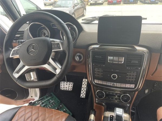 配置:滑动天窗、DINAMICA黑色车顶、氛围灯、3把差速锁、Desigo真皮座椅、巴博斯特殊调节悬挂系统、舒适头枕、21英寸5幅熏黑轮毂、前排座椅电动调节+座椅记忆、天鹅绒地毯、AMG碳纤装饰、停车辅助包、自动泊车功能/驻车系统、辅助控制系统、哈曼卡顿音响、AMG套件、盲点辅助、不锈钢包(车身不锈钢装饰)、后排娱乐系统、LED日间行车灯、魔术雨刮(感应雨刮)、AMG加速系统、车内照明、遮阳板+梳妆镜、儿童座椅附件、儿童安全锁、自动空调、双氙气头灯、电子防滑系统、制动系统、拖车头插座、倒车雷达、后排加热、全方位吸热玻璃、电子牵引系统、电子稳定系统、胎压监测、AMG性能转向系统、灭火器。