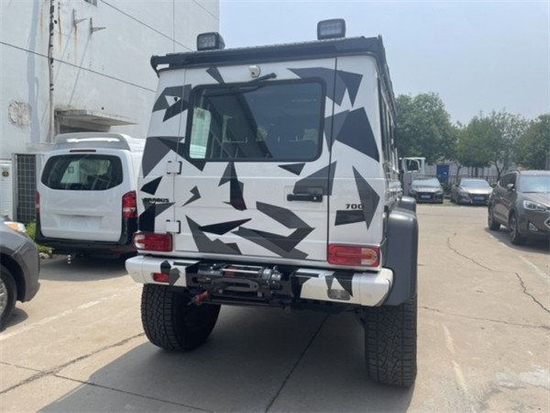 巴博斯G700 4x4²,车型定位中大型SUV,采用5门5座SUV结构,车子平行进口的价格为680万,车身配的是侧边双出排气,采用22寸大轮毂,提升档次。外观也更加凶悍更加硬汉,内饰颜色也丰富了车内的色彩,与全黑的外观形成强烈对比反差,给人一种刚柔兼济之美。