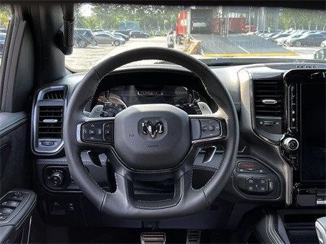 道奇公羊霸王龙内饰部分进一步强化了其高性能版本的形象,中控台和座椅随处可见的TRX标识便是最好的例证。同时,作为道奇Ram家族的旗舰车型,新车还配备了12英寸竖置中控屏幕,除了支持蓝牙、导航和车载Wi-Fi等常见功能,还支持Apple CarPlay和Android Auto手机映射。