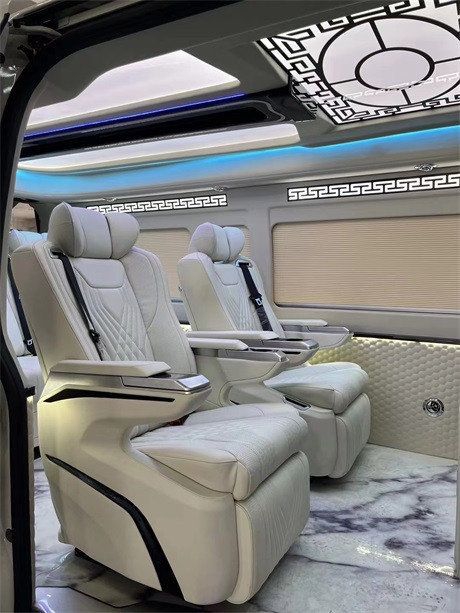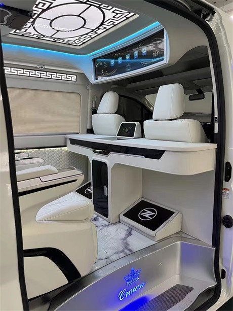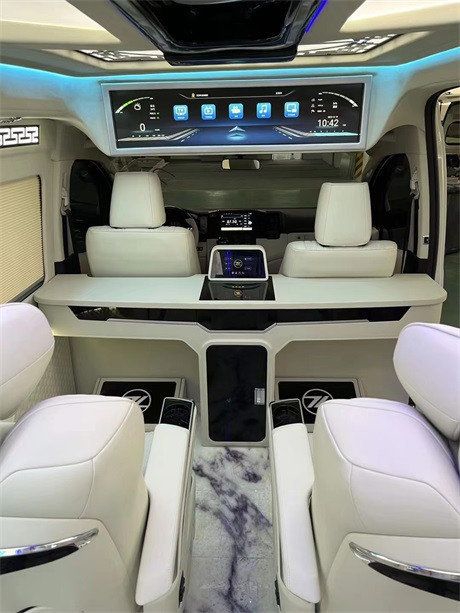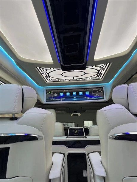 配置:全车模具,不变形,无异味,吧台,埃尔法 (配置|询价)款包围、触屏款航空座椅(电动头枕、无线充电)、镂空中国风顶灯与侧壁灯带、JBL音响、定制铝合金锻造轮毂,主副驾真皮座椅、电动座椅、通风、加热,38.5寸曲屏吸顶电视,9寸中控显示大屏(卡仕达导航➕ 环影),电动中门,全车真皮手工包敷,全车加强版隔音,全车隐私膜,高端定制款木地板,空气净化系统……