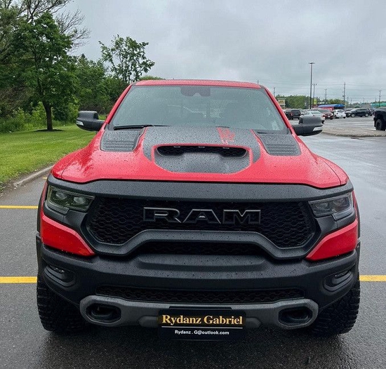 外观方面,新车传承了道奇RAM家族高大威猛的造型设计,同时细节部分融入了更多高性能元素,包括经过黑化处理的前格栅,引擎盖两侧的黑色进气口,以及为了容纳巨大的机械增压器而设计的通风口等等。此外,新车还配备了视觉冲击力更强的黑色轮眉和外露式的拖车钩,看上去十分霸气。