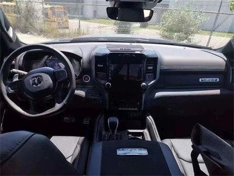 22款道奇公羊霸王龙内饰部分进一步强化了其高性能版本的形象,中控台和座椅随处可见的TRX标识便是最好的例证。同时,作为道奇家族的旗舰车型,新车还配备了12英寸竖置中控屏幕,除了支持蓝牙、导航和车载Wi-Fi等常见功能,还支持Apple CarPlay和Android Auto手机映射。