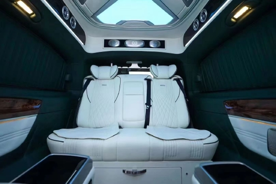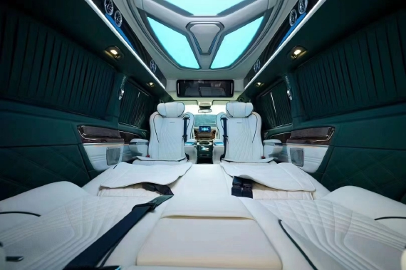 奔驰V250 颜色:黑/祖母绿配置:骑士包围,高档定制豪华伸缩翘屏款航空座椅,埃尔法 (配置|询价)豪华航空沙发床,主副座椅包覆,门控电动座椅带通风加热,17寸锻造轮毂,超耐磨航空铝木纹地板,进口压缩机双开冰箱,双杯托、220V电源USB双孔插座、两个USB、无线充电,航空铝脚踏、带储物盒,精准航空铝合金带灯迎宾踏板,高顶顶棚全套包覆,高顶造型设计及氛围灯雕刻定制,全车包覆,尾箱铝合金衣架,内饰手感漆,横屏电视,C柱壁灯,智能触屏控制系统,靠背桌板,迈巴赫款窗帘,迈巴赫车窗饰条,主副软包,全车原厂位氛围灯,迈巴赫大灯总成,迈巴赫尾灯总成,360全景,全车玻璃膜,全车音响升级等。