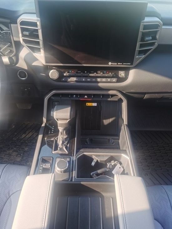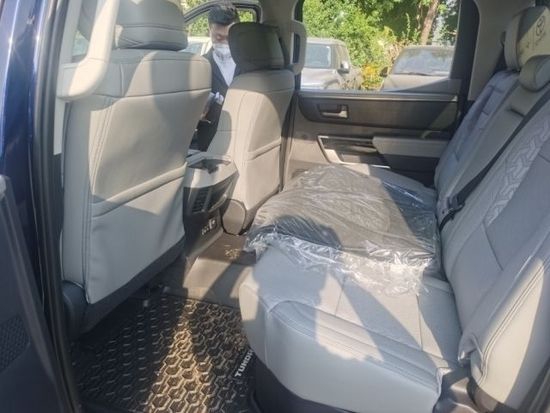 新款丰田坦途3.5TT座椅提供有皮质包裹,整体的造型也非常宽大,在中央扶手区域的设计上也采用了非常方正的造型设计,并且可以看到前排的储物空间设计还是非常丰富的。