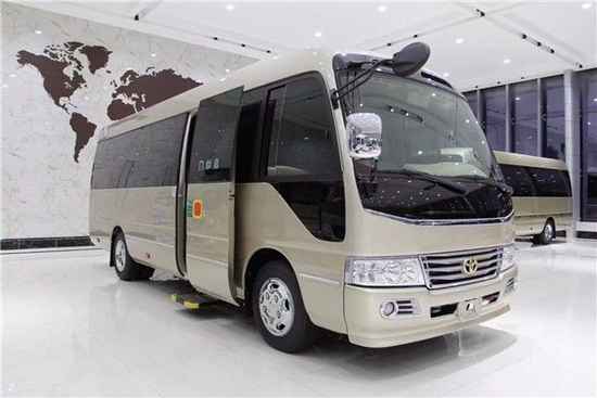 丰田考斯特改装商务车车身长度为7.005米,身宽度为2.040米,车身高度为2.774米。高大的车身为我们提供了宽敞舒适大的乘驾空间。丰田考斯特细节方面:新车新增了隔热隐私玻璃,各种镀铬装饰以及镀金标识,庄重感与豪华感油然而生。车内还配备了吸顶式电视,可以在车内打发闲暇的时间。宽敞舒适的车厢,使COASTER 看起来就像家庭轿车一样。此车还配备了自动门,让上下进入此车的人更加方便。