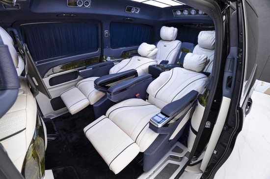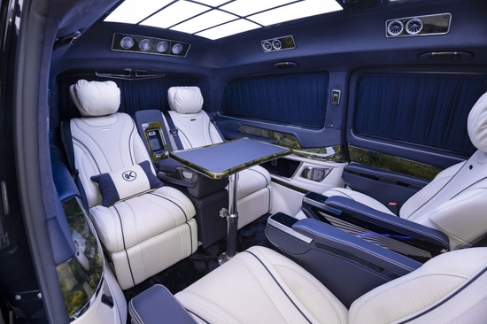 客舱的顶灯为迈巴赫同款圆弧形设计,使用石英材质,拥有普通玻璃10000倍的电绝缘性,还具有极佳的热温性与透光性。顶棚克蒂定制三眼马祖表和镶嵌式控制台总成搭配浑然一体,相得益彰。