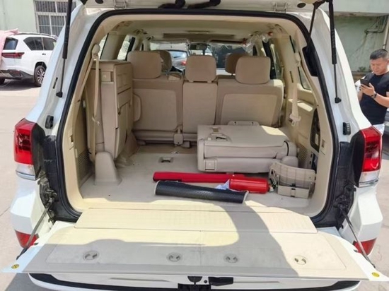 丰田酷路泽5700VXR 配置:KDSS 8气囊、丝绒座椅、285/50R20轮、天窗、一键启动、智能卡、冰箱、遥控启动、大屏、倒车影像、LED氙气大灯、主驾驶电动座椅、新款中网、镀铬前小杠、行李架、前2后4电眼、巡航定速、桃木多功能方向盘、桃木内饰、二挡起步、车身稳定系统、蠕行、上坡辅助、中央差速锁、车身彩条、镀铬门把手、航踏、防撞条、前雾灯、内门把手镀铬、拖钩、尾翼带刹车灯、中排座椅带中央扶手。