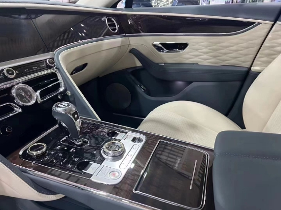 22款宾利飞驰三面翻转中控面板,当按下发动机起动按钮时,仪表板中央的饰面无声地滑动翻转,可呈现出一个12.3英寸的触摸屏,该屏幕上配备三个可自定义设置的数字界面。内饰用料顶级,手能触及的地方非真皮即实木,选材不计成本。