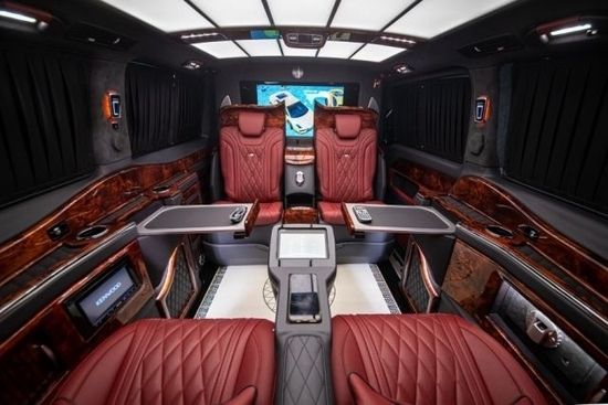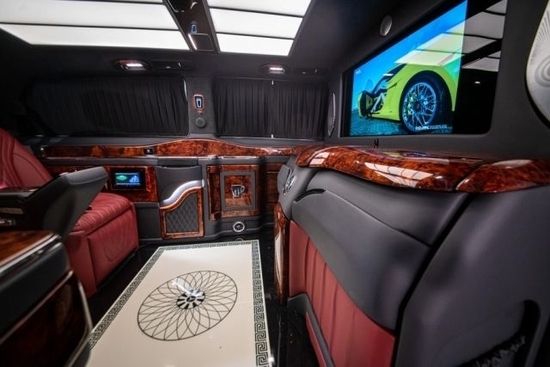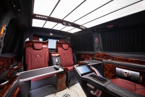 升级内容:四座(4+2隐藏2座)航空座椅(通风加热按摩双节腿托)、吧台椅、迈巴赫顶灯、化妆镜、侧壁电动小桌板、黄色壁灯、360全景解码器、带锁开关按钮、迈巴赫衣架、USB插口、4门铝合金全包脚踏、喇叭罩、无线充电、对讲电话、方向盘包真皮+高光岑木、涡轮风口、带USB插座、迈巴赫立标、继电器、32寸隔断屏+电视、保险柜指纹锁、冰箱-多美达、热水壶-唯固、柏林之声喇叭罩、镜面地板、黑色麂皮绒、全车高光岑木、建武DVD(5.1功放、劲浪中置、劲浪扬声器、阿尔派低音、阿尔派处理器)、V250单门双层黑窗帘、旋转热水壶、T形扶手箱、主副司中扶手、酒柜框架和杯架、大侧壁小侧壁模具套件桃木制作、航空座椅安全带支架、迈巴赫包围、行李架、尾灯、玻璃亮条长轴、倒车雷达、倒车影像、气动悬架、17寸大饼轮毂