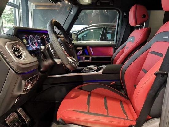 2022款限量版奔驰G63内饰方面,奔驰的设计绝对可以用惊艳来形容,无论是经典车型还是超豪华车型甚至是入门级的豪华车上,奔驰的内饰都会让你眼前一亮,当然了这也是奔驰的一个特色。所以这部全新的G63在内饰的表现上也是情理之中的,但是细节上还是有些小小的意外。这种感觉是打开车门的瞬间就能够感受到的。首先仪表和中控屏依旧是采用了同一款液晶屏显示,第一感觉就是科技感爆表。而其他方面例如方向盘,空调出风口,挡杆等等的设计充满设计感。