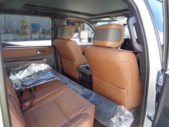 2022款丰田坦途采用了全新的设计风格,最具辨识度的莫过于前脸这块非常大的进气中网设计,通过亚光银的饰条搭配黑色蜂窝网状的造型使得视觉上整个中网的面积似乎从车标一直拉通到前保险杠的位置上,第一感觉无疑是非常野性的。张经理17695561666微信同号
