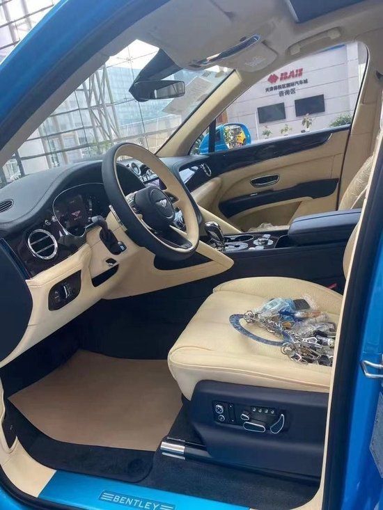 选配:双色加热方向盘,五座舒适座椅配置,座椅刺绣宾利徽章,深提琴背桉木,付费外漆,双层隔音玻璃,21寸五双幅铝合金黑色机械切割轮毂