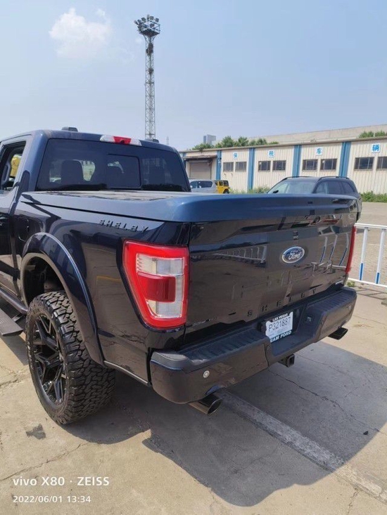 22款美规福特F-150(谢尔比) 配置:以下1 外观配置 参数 2 22寸谢尔 比合金轮毂 3 BFG全地 形KO235/1 12.5R22寸 4 BDS SHEL BY 避震 5 SHELBYF OX品牌气 动储端 6 SHELBY速 度校准器 7 调节前倾角 角 8 轮胎传感暑 调节 9 SHELBY红 红色卡钳 10 自动脚踏板 11 迎宾灯 12 彩绘挡泥板 13 带SHELBY标志彩色挡 泥板通风口 14 SHELBY火箭拉花 15 车身同色门把手及反光 镜 16 熏黑车窗边条