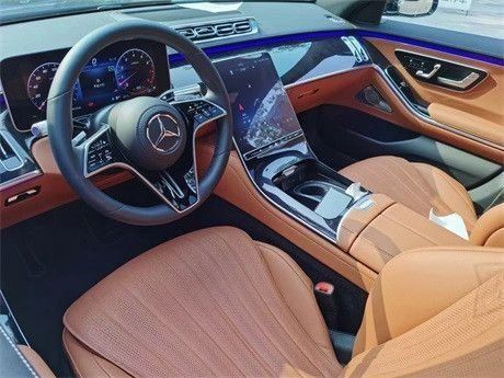 22款奔驰S500中控台垂瀑式中央触控屏从中控台纵向延伸,凸显出了简约的设计感。整个内饰的豪华感当然是无须质疑,触手可及之处几乎全用上了皮革包裹,配合带263个LED单元的动态氛围灯进一步升华了内饰氛围感。AMG Line的方向盘通过对造型的重新雕塑,变得更加立体。