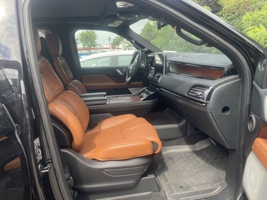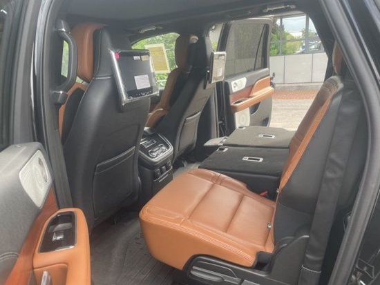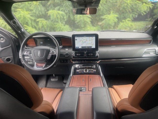 22款林肯领航员3.5TT 7座精雕细琢的内饰, 结合了美国胡桃木和高级真皮材料、丝光镍饰件与白色发光二极管等组合一起,营造出一个豪华、浪漫而又极具现代感的车内环境。方向盘和轿车一样的轻盈,周身散发出来的尊贵气息,让人肃然起敬。22款林肯领航员新款三幅式多功能方向盘带加热功能,真皮包裹方向盘兼具温润触感与典雅质感,三幅式设计令操控更加得心应手,在尊崇气息之上平添一分动感魅力。真皮部分可在短时间内加热,即便在寒冷的天气状况下,也能保持对温度的掌控感。内饰豪华气派,做工精细。车内大量皮质和实木材覆盖,让人即刻尊享定制体验。新款林肯领航员采用12英寸全液晶的仪表盘,悬浮式显示屏,科技感十足。