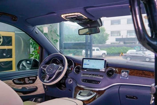 奔驰V250商务车内饰方面同样做了整体的升级,中控台、方向盘、门板、车侧壁、车顶、进门的踏步整体升级包覆。正副驾驶座椅升级包覆、正副驾驶座椅中间加装车载扶手冰箱、正副驾驶座椅头顶定制宽屏车载网络电视、正副驾驶座椅椅背后方加装可伸缩的小桌板。联系电话:18812637416刘经理 (同号微信)第二排座椅升级成两个独立的航空座椅,航空座椅带多向电动调节功能,带通风、加热、按摩等舒适功能、同时航空座椅还带有选装功能,旋转之后可与第三排座椅形成对坐状态。第三排座椅升级成宽大舒适的三联排沙发床,可电动调节、前后移动,靠背可180度放平平卧。