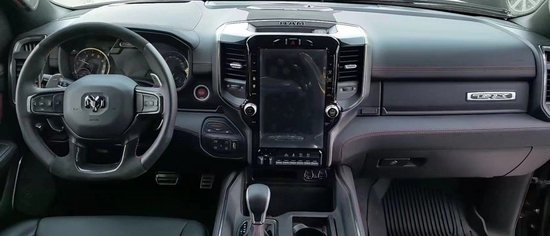 22款道奇公羊霸王龙内饰部分进一步强化了其高性能版本的形象,中控台和座椅随处可见的TRX标识便是最好的例证。同时,作为道奇家族的旗舰车型,新车还配备了12英寸竖置中控屏幕,除了支持蓝牙、导航和车载Wi-Fi等常见功能,还支持Apple CarPlay和Android Auto手机映射。