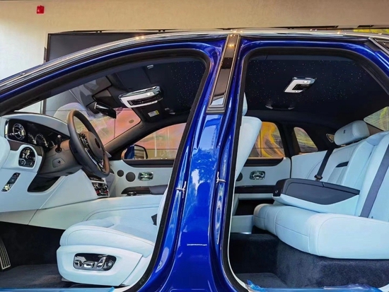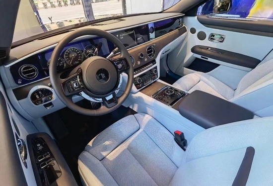 劳斯莱斯古思特沉稳自信的内部沿袭了劳斯莱斯的典型设计。复古式三幅大直径方向盘采用了正圆形设计,外部包裹的小牛皮材质触感也非常细腻。车内不论按钮、旋钮或是轮盘,极佳触感回馈伴有着并非清脆的响声,而是静谧无声。劳斯莱斯古斯特后排扶手上的金属装饰,看起来非常精致,储物袋是可以打开的,里面很适合放一些文件,就连前排扶手背面也有皮质包裹,摸起来触感不错,非常细致。木质的小桌板和内饰很搭,看起来非常有质感。后排乘客还可以通过后排娱乐系统来查看调节内容,功能比较强大。
